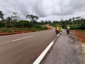 Selon les équipes du ministère des Travaux publics, maître d’ouvrage, les interventions en cours concernent la signalisation horizontale et verticale, la stabilisation des talus, les travaux de revêtement ainsi que la mise en place des descentes d’eau. Sur la quasi-totalité du linéaire, le bitumage est achevé, à l’exception d’un tronçon d’environ six kilomètres encore en traitement.