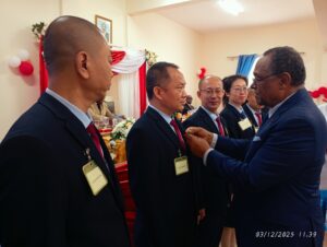 La cérémonie de décoration des 25 membres de la 24e équipe médicale chinoise en fin de mission au Cameroun s’est déroulée ce 03 décembre 2025, à l’hôpital Gynéco-Obstétrique et Pédiatrique de Yaoundé (HGOPY), fruit de la coopération sino-camerounaise.