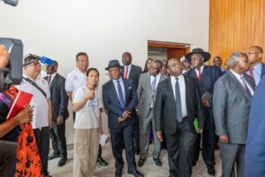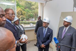 Accompagné des ministres camerounais du Commerce, Luc Magloire Mbarga Atangana, de la Communication, Réné Emmanuel Sadi, et du Tourisme et des Loisirs, Gabriel Mbaïrobe, le Premier ministre a été accueilli au Palais de congrès, fleuron de la coopération sino-camerounaise, par le personnel camerounais et chinois en service. Joseph Dion Ngute a apprécié sur place, l’état d’avancement des travaux réalisés conformément au cahier des charges de l’OMC. Il a fait une inspection minutieuse des installations techniques et logistiques de l’ouvrage, insistant sur la nécessité d’une parfaite fonctionnalité des espaces, tant pour les sessions ministérielles que pour les réunions annexes.